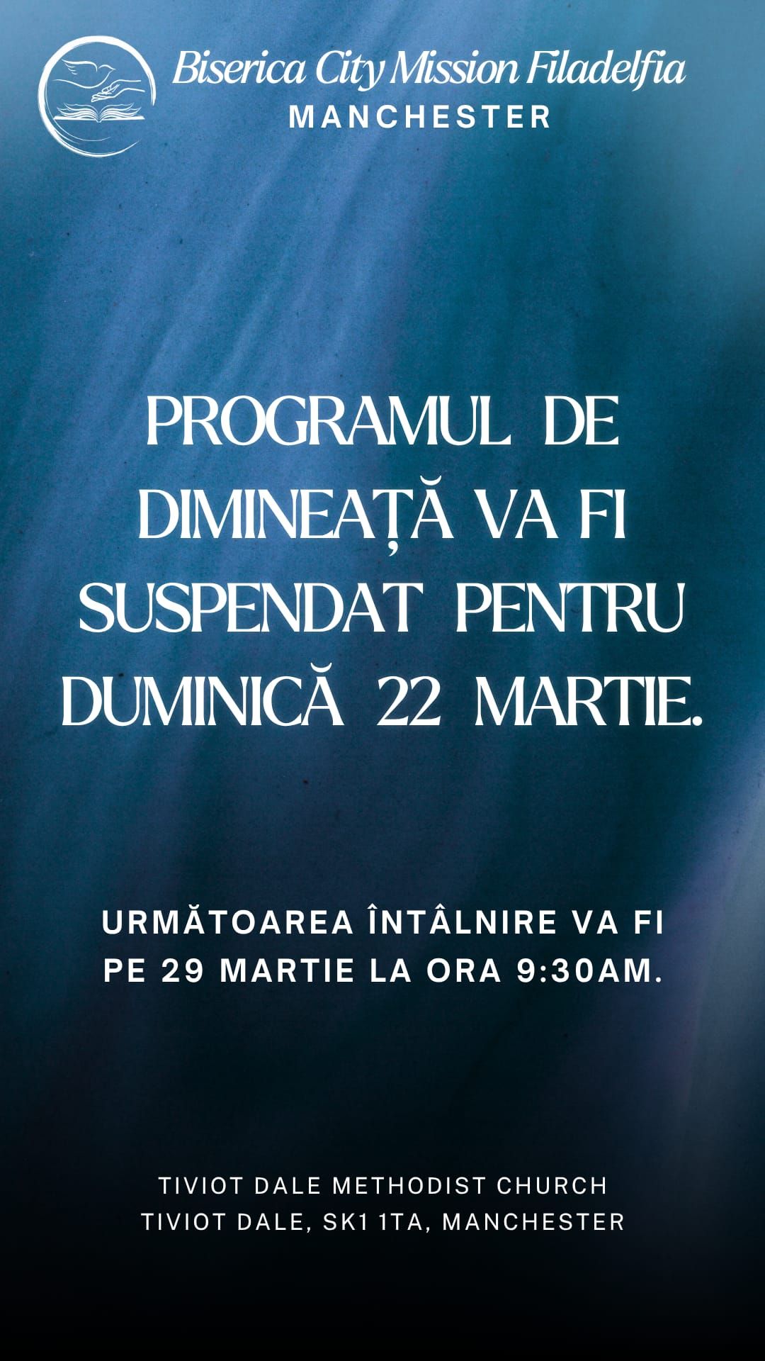 Cu ajutorul Domnului vom începe din nou întâlnirile de dumincă la locația din Manchester! Te așteptăm și pe tine să…