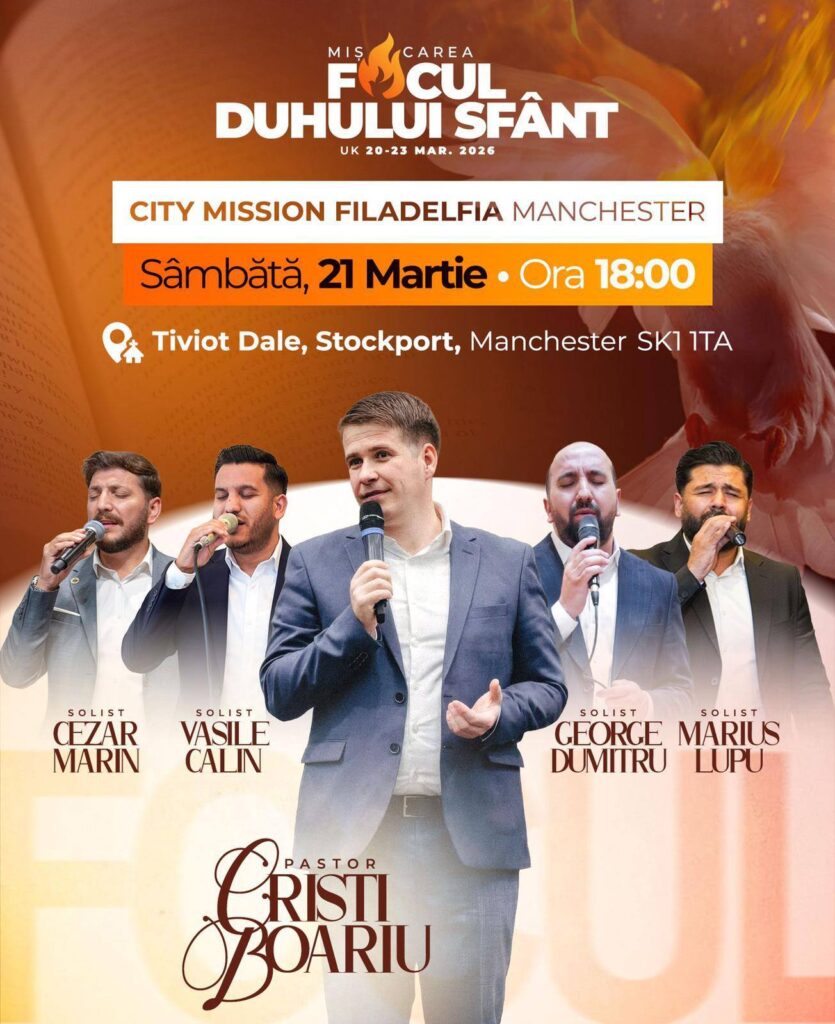 Mesajul Evangheliei va fi vestit de fratele pastor CRISTI BOARIU.